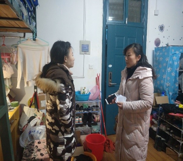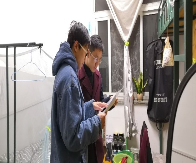 2019年春季学期开学安全教育》宣传资料,并以多种形式从防火、防盗、防骗、谨防校园贷、出行安全、实验室安全等方面生动讲解安全知识;且根据进寝室时观察到的安全问题,对寝室同学提出解决建议方案以及防范的措施,及时发现隐患问题并指正,做到早发现、早控制、早解决;并勉励大家共同珍惜新学期时光,不要虚度光阴,科研工作再上新台阶。