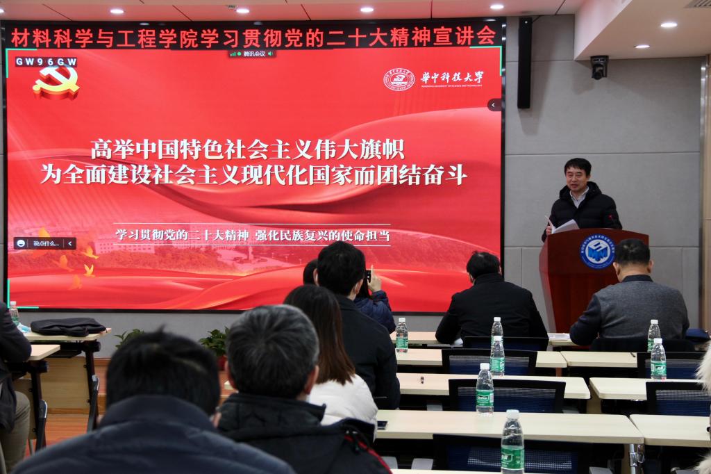 陈廷柱首先介绍了党的二十大的基本情况。他指出,党的二十大是在全党全国各族人民迈上全面建设社会主义现代化国家新征程、向第二个百年奋斗目标进军的关键时刻召开的一次十分重要的大会,是一次高举旗帜、凝聚力量、团结奋进的大会。他从党的二十大主题和主要成果、过去5年的工作和新时代10年的伟大变革、马克思主义中国化时代化、中国式现代化、全面建设社会主义现代化国家的目标任务、坚持党的全面领导和全面从严治党以及应对风险挑战等主要内容,完整、准确、全面地阐述了党的二十大精神精髓要义。他指出,学校坚持与祖国共进,与时代同行,努力办好人民满意的教育,十年来已取得许多发展成就,根据党的二十大报告中有关加快建设教育强国、科技强国、人才强国,办好人民满意的教育,完善科技创新体系,加快实施创新驱动发展战略,深入实施人才强国战略的重要论述,学校将从七个方面完整准确全面贯彻党的二十大精神。